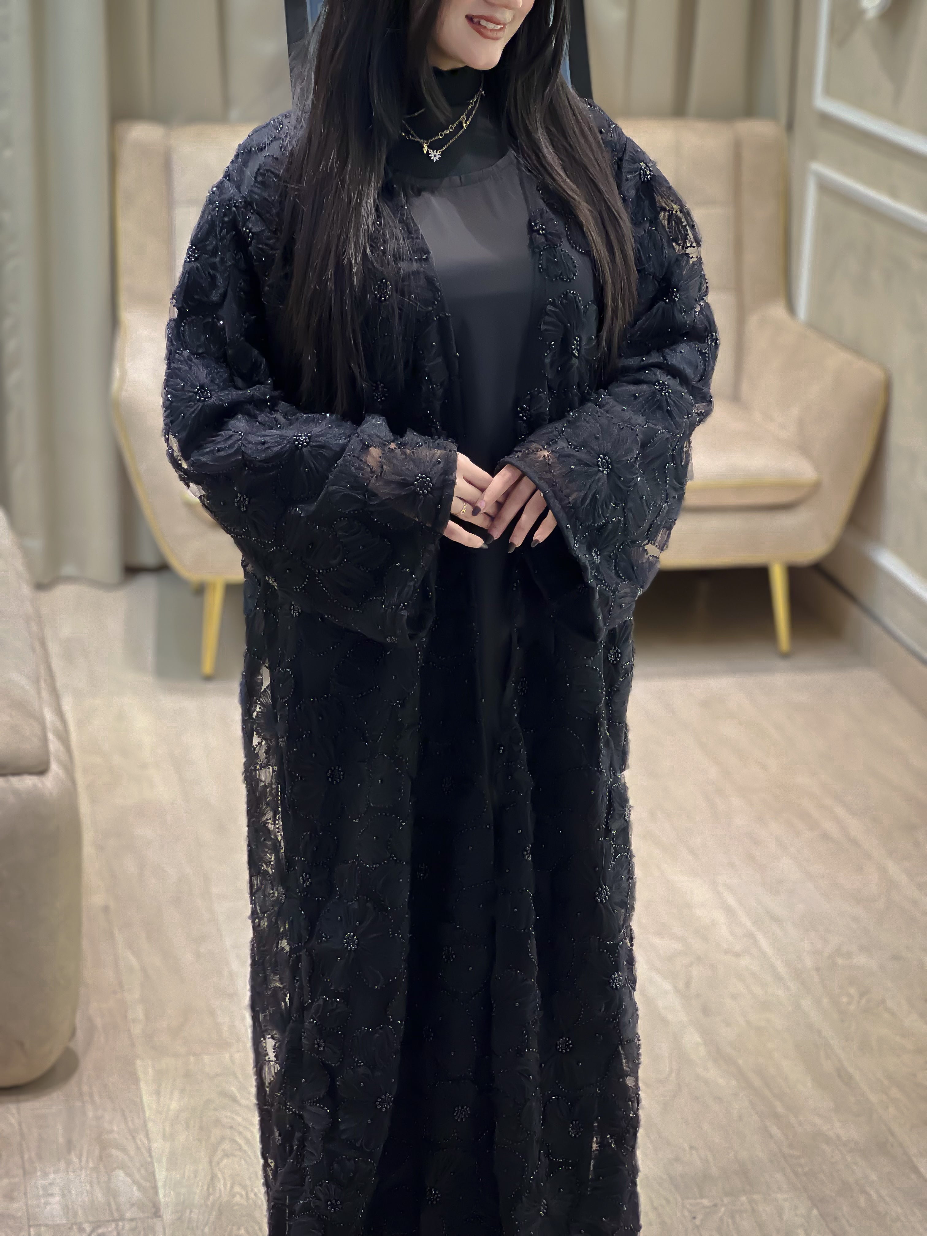 Black Organza Styled Abaya -MH117
